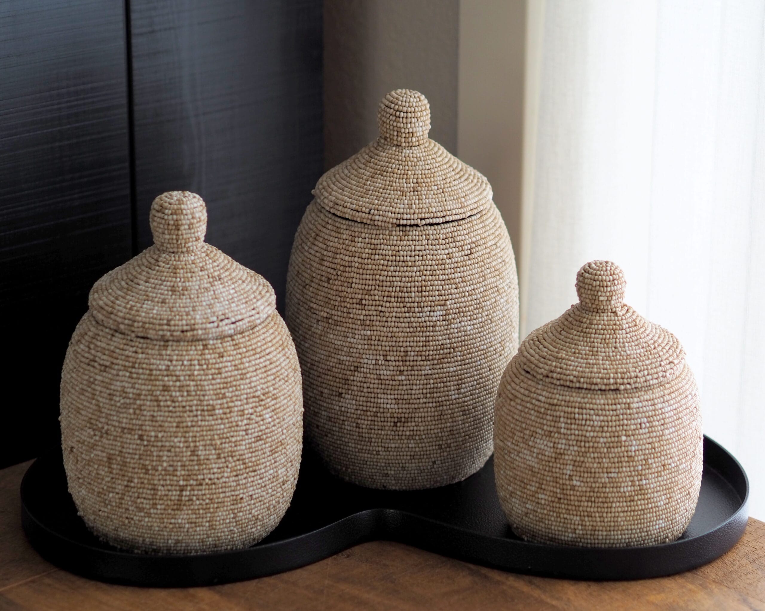 Houten kralen potjes | beige