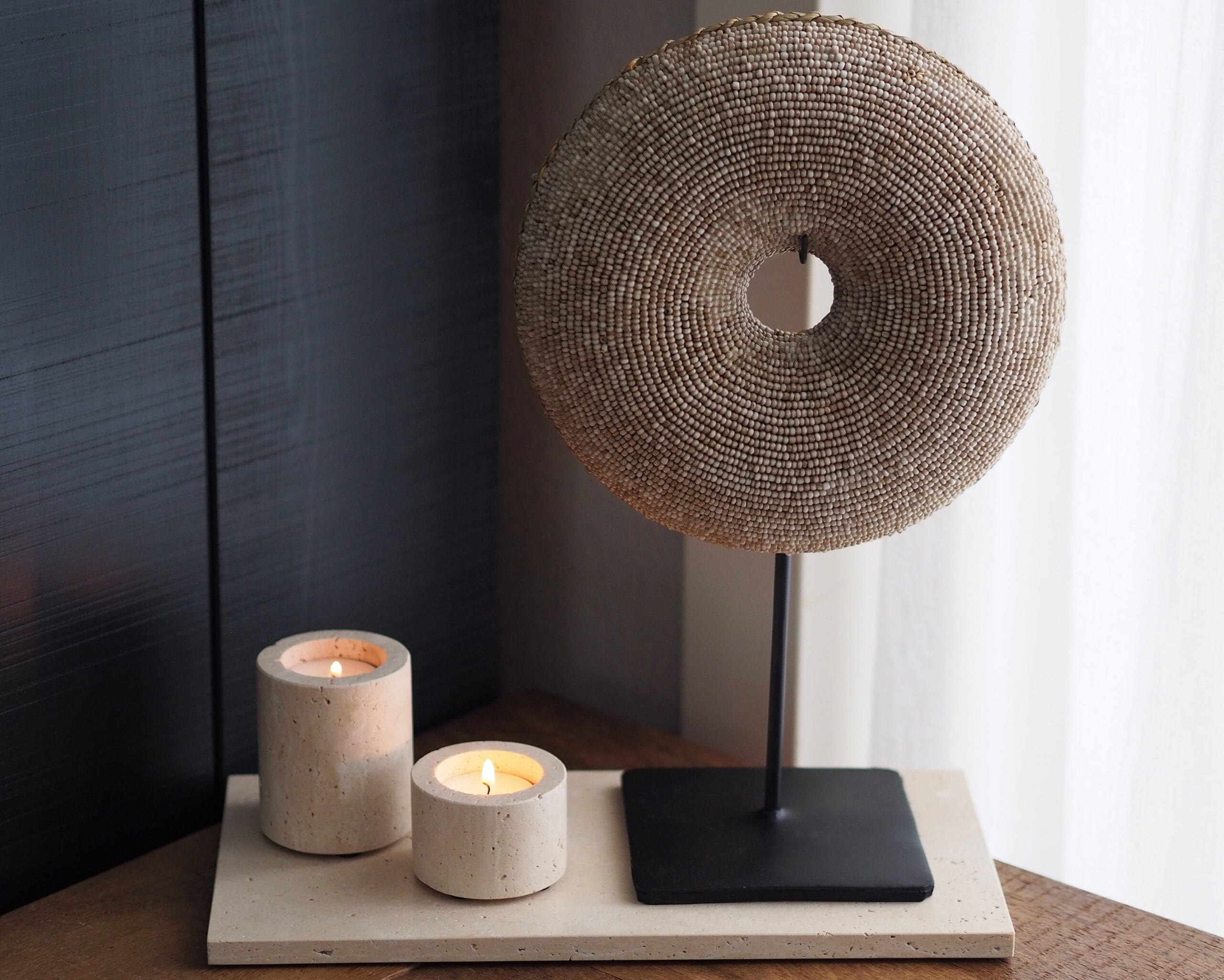 Nieuwe kralen ornament Lembar in onze collectie! Een massief houten bord dat helemaal met de hand is bewerkt met kleine kralen in de kleuren combinatie beige, bruin en donkerbruin. Ze zijn er in drie verschillende afmetingen maat S, M en L.