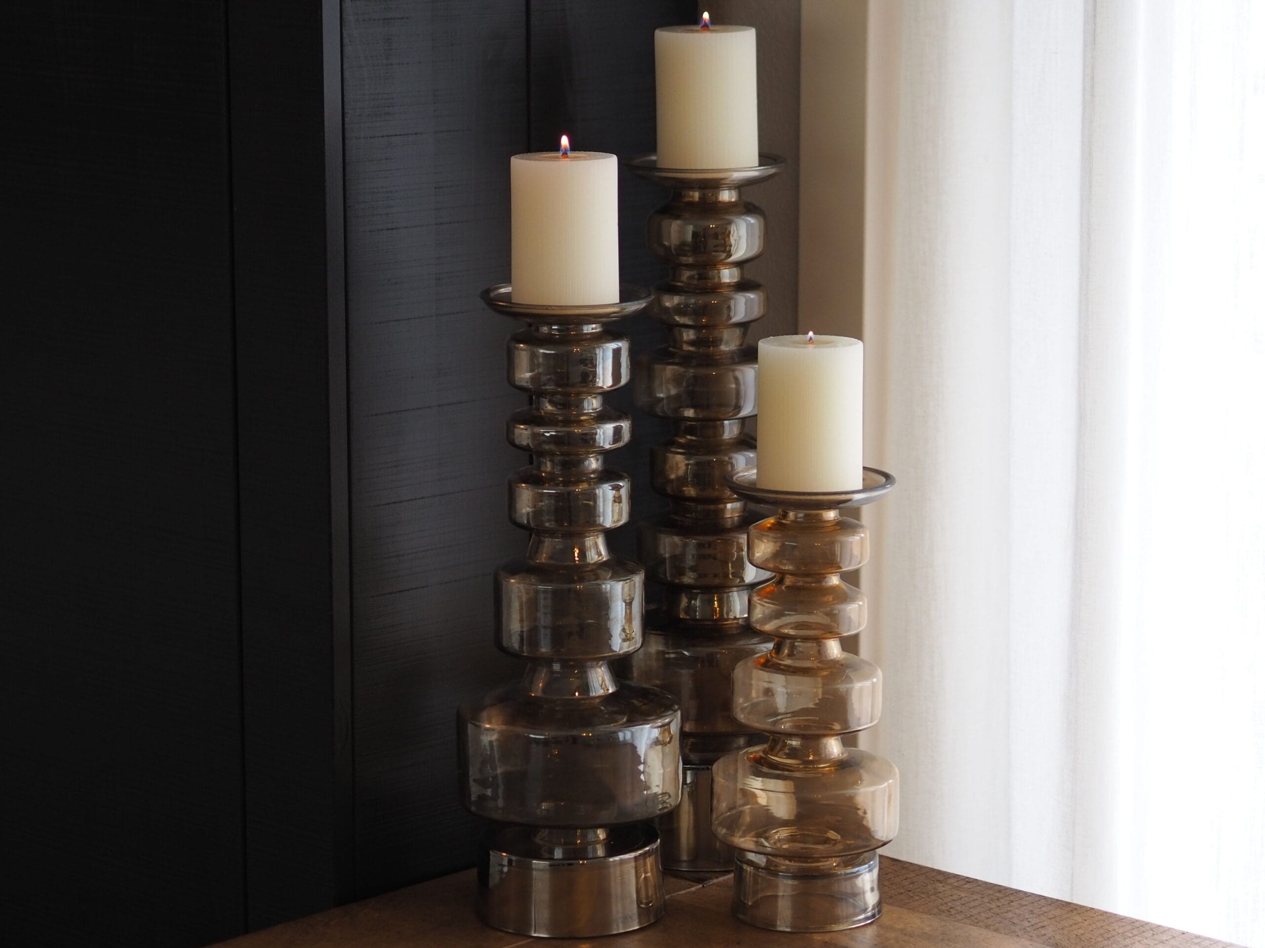 Breng luxe en sfeer in je interieur met deze prachtige bestseller oyster kandelaren. De kandelaren zijn gemaakt van glas en hebben een chique en warme brown luster kleur. Ze zijn verkrijgbaar in een set van 3 en hebben verschillende hoogtes.